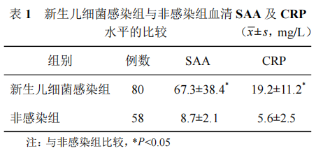 研究表明:SAA和CRP可作为新生儿细菌感染诊断的重要指标,SAA较CRP更为敏感,SAA与CRP的联合检测能够提高新生儿细菌感染的检出率,为疾病的早期诊断和监测提供实验依据。
